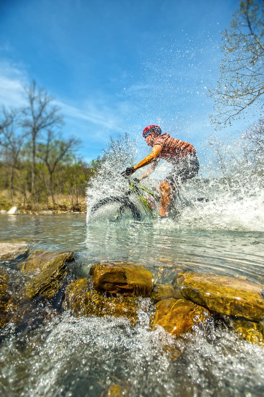 Devil’s Den State Park is an iconic park in the Arkansas State Park system. It’s huge rock formations, caves, creek, and Civilian Conservation Corp legacy conjure unmatched, engaging terrain. Stop in the Visitors’ Center to talk with Assistant Park Superintendent, the Godfather of Arkansas Mountain Biking, Tim Scott to recount the first mountain bike festivals and downhill escapades. Fossil Flats trail was the passion project of Tim Scott after he was inspired in the early 1980s by a mountain bike festival he attended in a little place called Crested Butte, Colorado. Tim knew he had the terrain and grit (singletrack trail building was all by hand then) to create a truly special destination in his park. The Mountain Bike Festival has been happening in the park for over 30 years now. The trail system offers 3, 4.2, or 6-mile options in its stacked loop system. The shortest loop is the 3 mile Outlaw Loop. It is very beginner-friendly, the most difficult part is the crossing over the rock creek bed about 1.5 miles in. If you’re riding clockwise, the Sawmill Loop picks up where the Outlaw turns right and adds a good doubletrack climb with plenty of loose rock for added tech challenge. You can continue on the Sawmill with a turn to the right about a mile in or take that next mighty left up Racer’s Hill. Racer’s Hill will put you back onto Saw